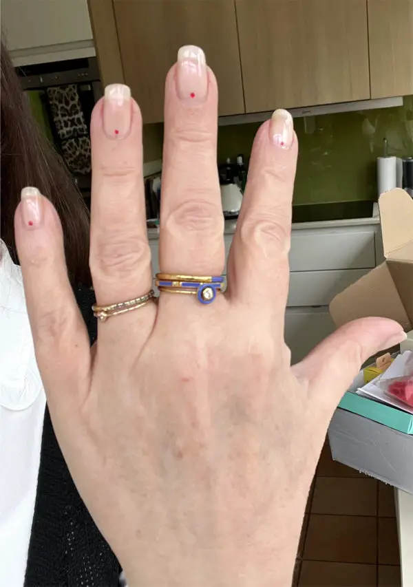 - Finish with a top coat to seal in the design and add shine.